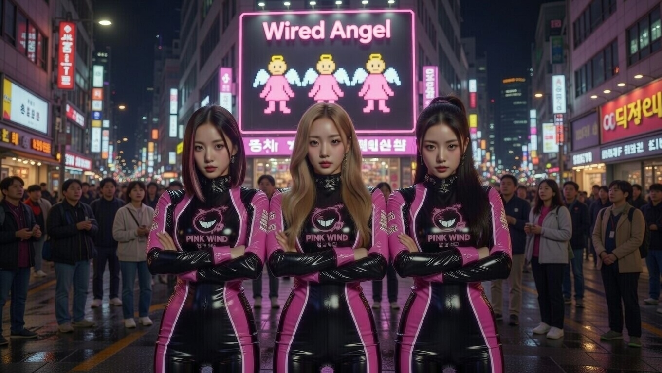 Pink Wind was born from the shared passion for Korean music of three girls who dreamed of creating something together. Through creativity, technology, and the support of artificial intelligence, they found a way to give shape to their vision — building a group, a sound, and a world they could finally share with others.